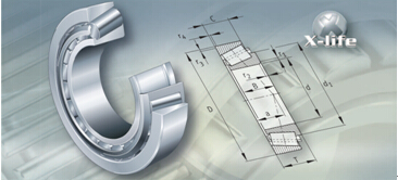帶保持架的單列圓柱滾子軸承由內圈、外圈、圓柱滾子及保持架組件構成。外圈兩側帶有剛性擋邊或沒有擋邊,內圈帶有一個或兩個剛性擋邊或沒有擋邊。保持架防止?jié)L子在滾動過程中相互接觸。 帶保持的圓柱滾子軸承具有良好的剛性,可以承受高的徑向載荷,并且因為帶有保持架,與滿裝設計的軸承相比,此類軸承更適用于高速場合。帶后綴E 的軸承經過優(yōu)化承載能力更高,因而適于更高載荷的工況。此類軸承的一個套圈可拆分,便于安裝和拆卸。內、外圈均可緊配合。帶保持架的單列圓柱滾子軸承可用作非定位、半定位及定位軸承。